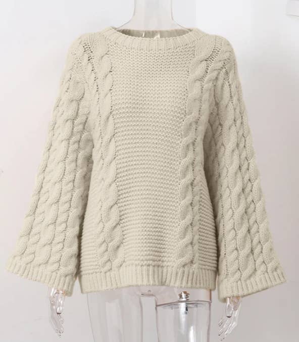 Slouchy Cable Knit Flare Sleeve Chunky Sweater Jumper