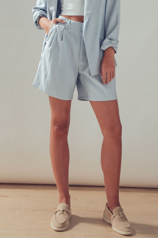 Soft Tailored Pleated Shorts- Dew Blue