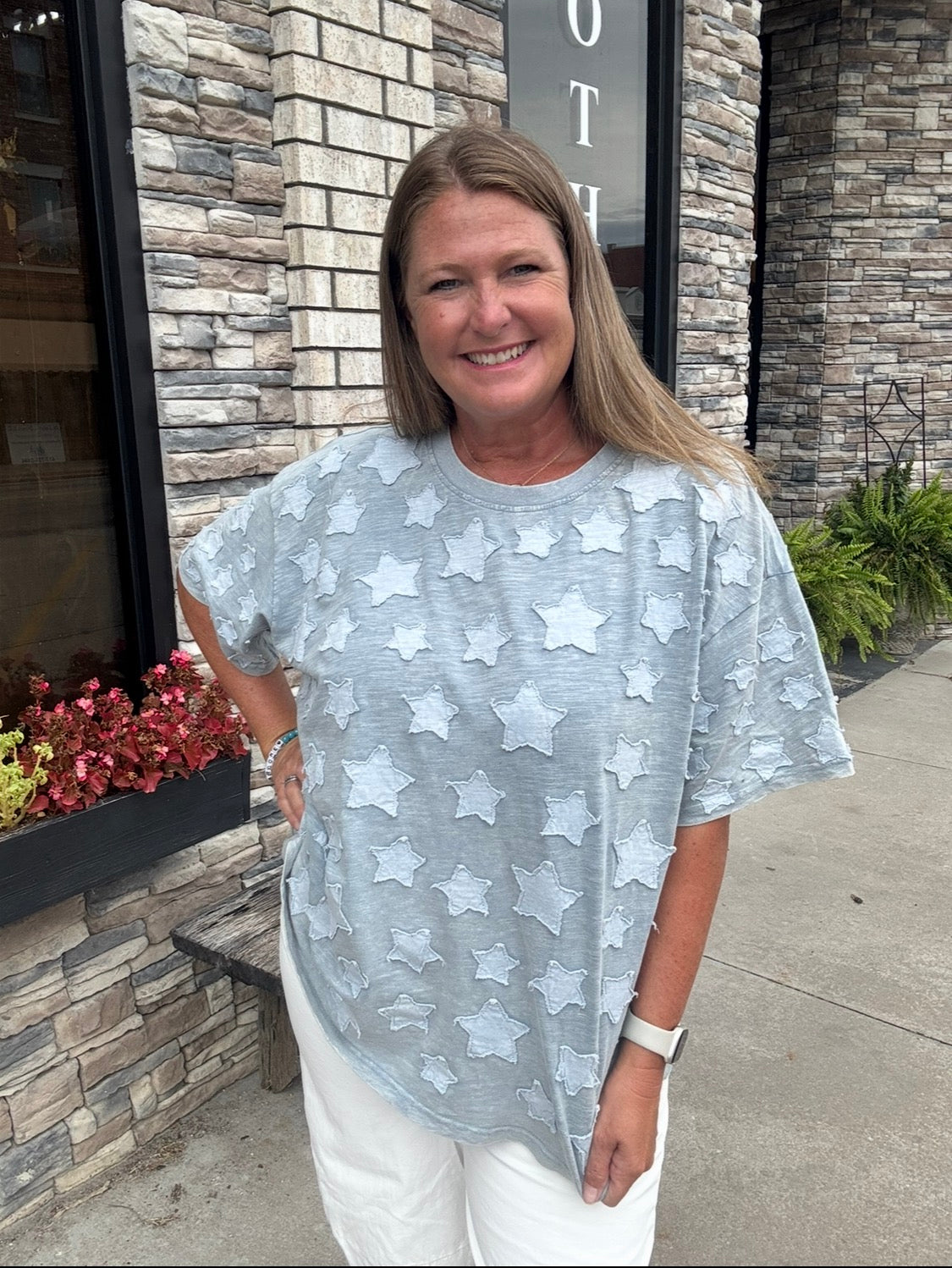Star Patch Round Neck T-shirt.