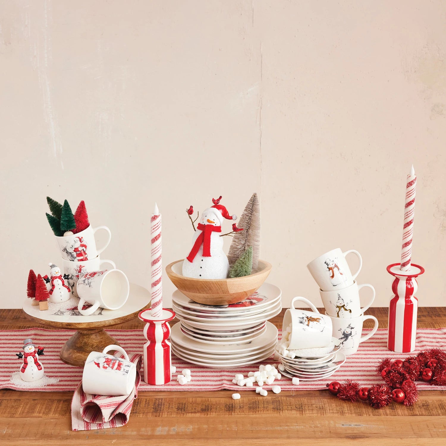 5" Round Stoneware Dish w/ Santa Image, Red, Black & White.